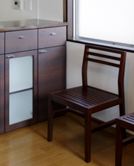 キッチン内側だけではなく、ダイニング側にも一工夫。リフォーム前には壁側に食器棚が並び、ものが溢れ返っていましたが、ダイニング側のカウンター下部にも収納スペースを設けることで、すっきりとした空間になりました。キッチンの面材の色と合わせることで統一感があり、落ち着いた印象を与えてくれます。
